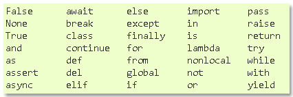 No tienes que memorizar esta lista. En la mayoría de entornos de desarrollo, las palabras clave son mostradas en un color diferente; si intentas usar una como nombre de variable, lo sabrás.