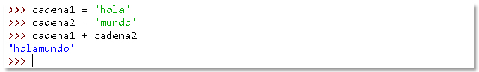 El operador + realiza una concatenación de cadenas, lo cual significa que une las cadenas enlazándolas de extremo a extremo. Por ejemplo: