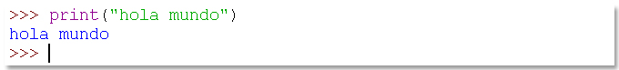 Este es un ejemplo de una sentencia print, aunque no imprime nada en papel. Esta muestra el resultado en la pantalla. En este caso, el resultado son las palabras: hola mundo.
